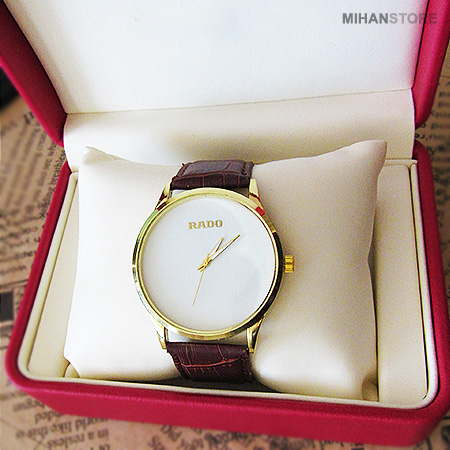 اگر به دنبال ساعتی هستید که با انواع مختلف لباس چه اسپرت و چه مجلسی سازگار بوده و به راحتی به دست شما باز و بسته شود، ساعت مچی بند چرم RADO را به شما پیشنهاد می کنیم. این ساعت در رنگ بند مشکی و قهوه ای عرضه شده است و دارای جعبه شکیل می باشد. ویژگی خاص این ساعت صفحه ساده و بسیار شیک آن می باشد.