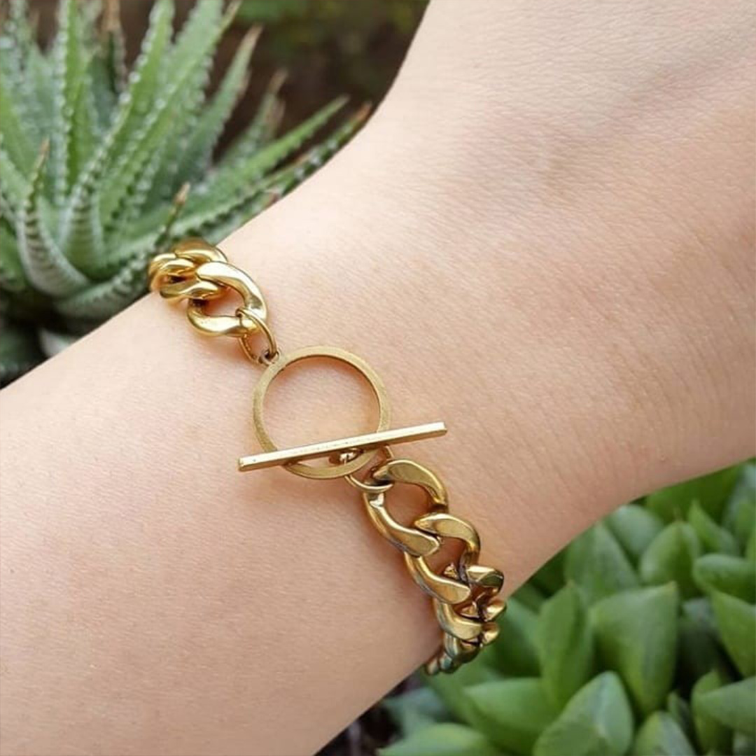 دستبند استیل اسپرت کارتیه با قفل تی از جنس استیل با کیفیت می‌باشد. این دستبند طرح کارتیه در دو رنگ طلایی و نقره ای ارائه میشود که هنگام ثبت سفارش قابل انتخاب است. این دستبنها به علت طرح اسپرت و محبوبیت بین اقایان و بانوان قابل استفاده هر دو میباشد که بسته به سلیقه هر شخص از رنگ طلایی و یا نقره ای استفاده میشود. دارای ضخامت بسیار محکم و بادوام است  در انتهای این دستبند یک عدد قفل محکم مدل تی بسیار زیبا قرار گرفته است است. منظور از طرح کارتیه، همان کنار هم قرار گرفتن قطعه‌های زنجیر شکل، روی دستبند است. این کالا مخصوص افراد خوش سلیقه طراحی شده و ابعادی مناسب دارد. این کالا با استفاده به مرور زمان، تغییر رنگ ندارد. گوشه‌های دستبند کاملا گرد و صیقلی شده و به لباس و سایر اجسام گیر نمی‌کند.