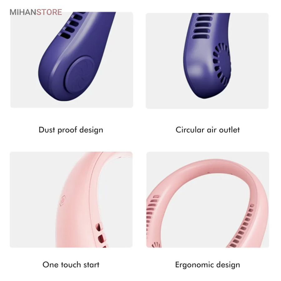 این پنکه همراه به وسیله شیارهای متعددی که روی بدنه خود دارد میتواند سر، صورت و گردن شما را خنک کند و شما را از یک هوای گرم نجات ببخشد. این فن راه اندازی سختی هم ندارد و بهراحتی با فشردن تنها یک دکمه فعال خواهد شد. همان دکمه میتواند دما را برای شما کم و زیاد هم کند. سرعت این پنکه در سه حالت قابل تنظیم است که میتوانید بنا به نیازتان و میزان گرما از آنها استفاده کنید. موتور این پنکه پر قدرت بوده و بیصدا است. این پنکه با اتصال سیم usb به یک شارژر شارژ میشود و نیازی به باطری با سیم همراه ندارد، از این رو شما میتوانید از این پنکه گردنی همراه در هرمکانی که دوست دارید استفاده کنید. با توجه به جنس و وزن کم این محصول اصلا ضرری را به گردن شما متحمل نمیشود. این پنکه به راحتی با زاویه صورت قابل تنظیم است. از طرفی این پنکه بازوهای قابل انعطاف داشته و منعطف است. بنابراین اندازه دلخواه را میتوانید به راحتی تنظیم کنید.