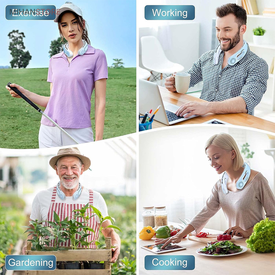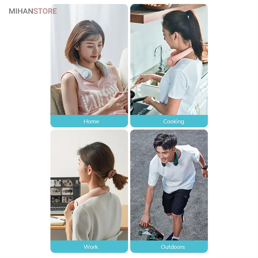 میتواند برای ورزش، در هنگام گردش و تفریح، در سفرها و حتی در محل کار شما مورد استفاده قرار بگیرد. از قابلیتهای جالب این فن این است که میتوانید به کمک دکمهای که بر بدنه آن تعبیه شده است؛ دمای فن را در سه حالت خنک کننده کم، متوسط و زیاد تنظیم کنید. با فشردن تنها یک دکمه دستگاه شروع به کار میکند و با همان دکمه میتوانید دما را کم و زیاد کنید. منبع تغذیه این فن باتری است وبه وسیله کابل Micro USB میتوانید این دستگاه را شارژ کنید. از نظر طراحی این دستگاه بسیار زیبا طراحی شده و شما را به یاد هدست می اندازد. بنابراین میتوانید به همان صورت آن را دور گردنتان بیندازید و از آن استفاده کنید. جنس بدنه این فن هم سیلیکونی است و هنگامی که در طولانی مدت آن را دورگردن بیندازید شما را اذیت نخواهد کرد.