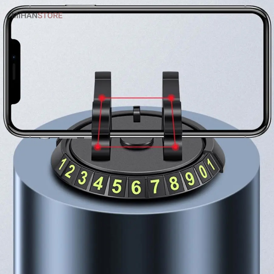 نگهدارنده گوشی قابل چرخش است، می توانید زاویه مناسب را تنظیم کنید و دید خوبی را برای گوشی های موبایل فراهم کنید.این هولدر موبایل خلاقانه دارای ابعاد 8.5×4 سانتی متر است. از این هولدر می توانید به عنوان یک پارک فون نیز استفاده کرده و شماره موبایل خود را با استفاده از برچسبی که داخل محصول قرار دارد بر روی هولدر بچسبانید تا اگر شخصی بابت جابه جا کردن خودرو به شما نیاز داشت بتواند با شما تماس حاصل کند، همچنین می توانید با یک چرخش ساده شماره موبایل خود را پنهان کنید و فقط از هولدر استفاده کنید. اعداد بزرگ و واضح هستند و در شب به وضوح قابل مشاهده هستند. چرخ دنده های چرخان می توانند شماره موبایل را پنهان کنند، از حریم خصوصی به خوبی محافظت کنند، از طریق شیشه قابل مشاهده باشند. این هولدر ضد لغزش و ضد ضربه بوده و امکان تماشای ویدیو، تماس با تلفن همراه پایدار و بادوام را برای شما به ارمغان میاورد.