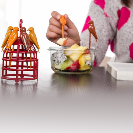 چنگال میوه خوری طرح قفس با طراحی جالب و منحصر به فرد شامل یک قفس پرندگان به عنوان استند و پایه، و 6 چنگال با طرح پرنده های زیبا می باشد که علاوه بر زیبایی ضیافت های شما بسیار اشتها آور نیز می باشد. این محصول از کیفیت بسیار بالایی برخوردار می باشد و در بسته بندی اورجینال و شکیل عرضه شده است.